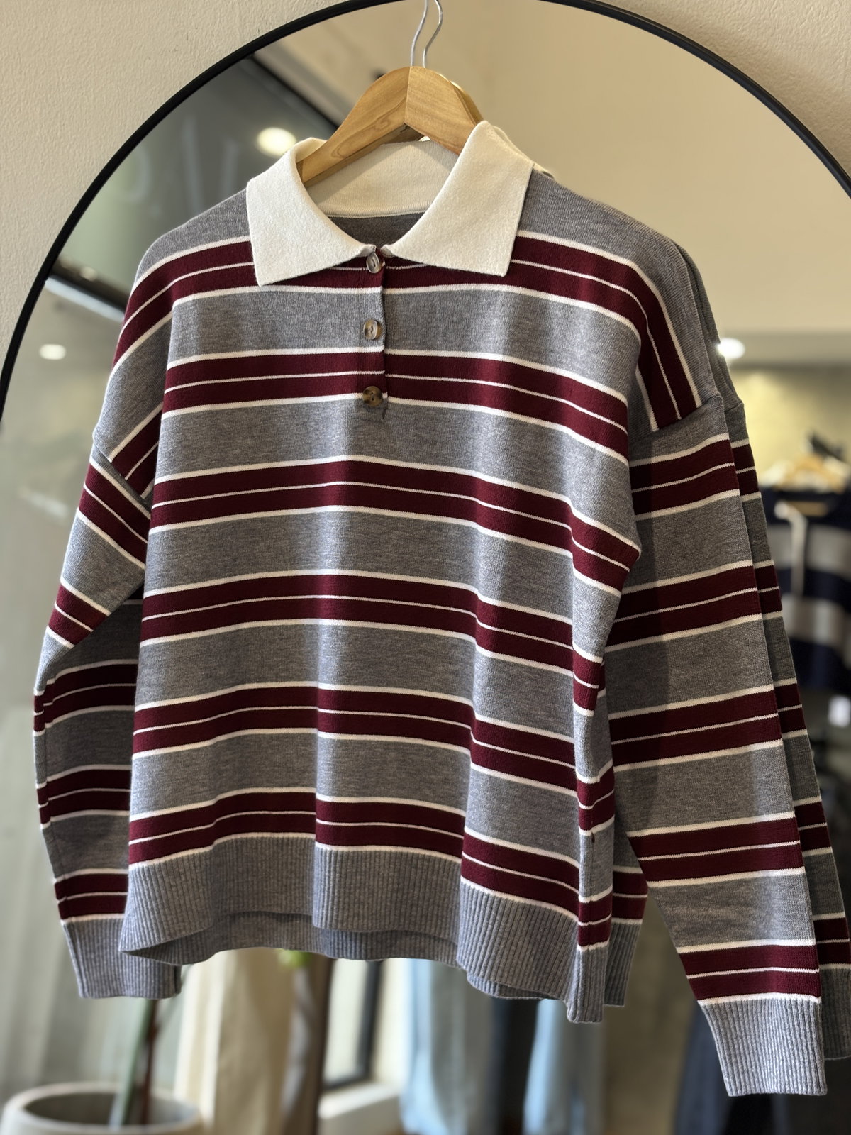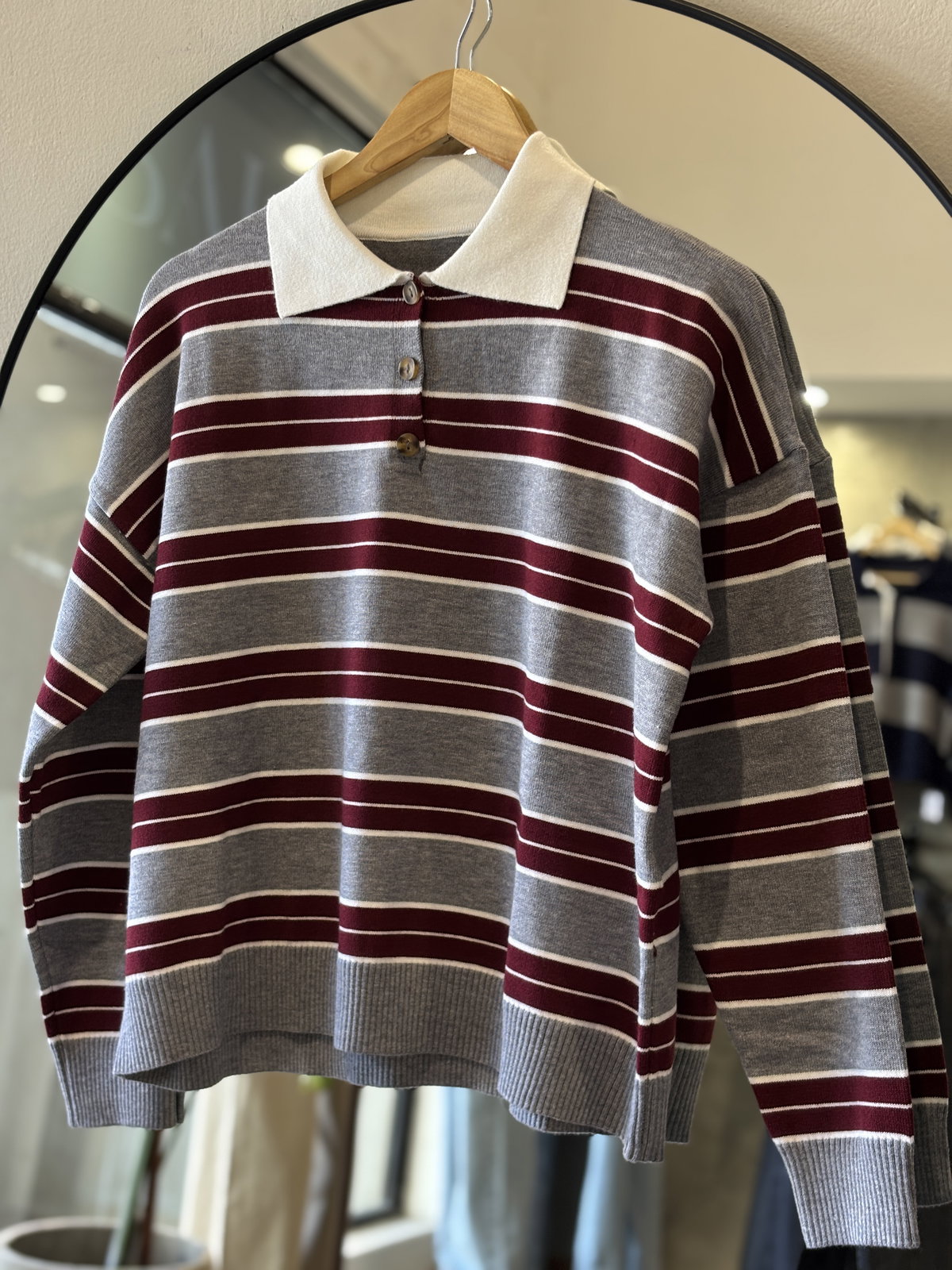 Descripción: Chomba de cuello solapa con cuello combinados a contraste. Detalle de botones delanteros.