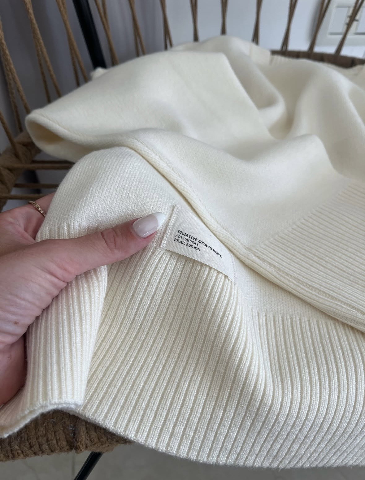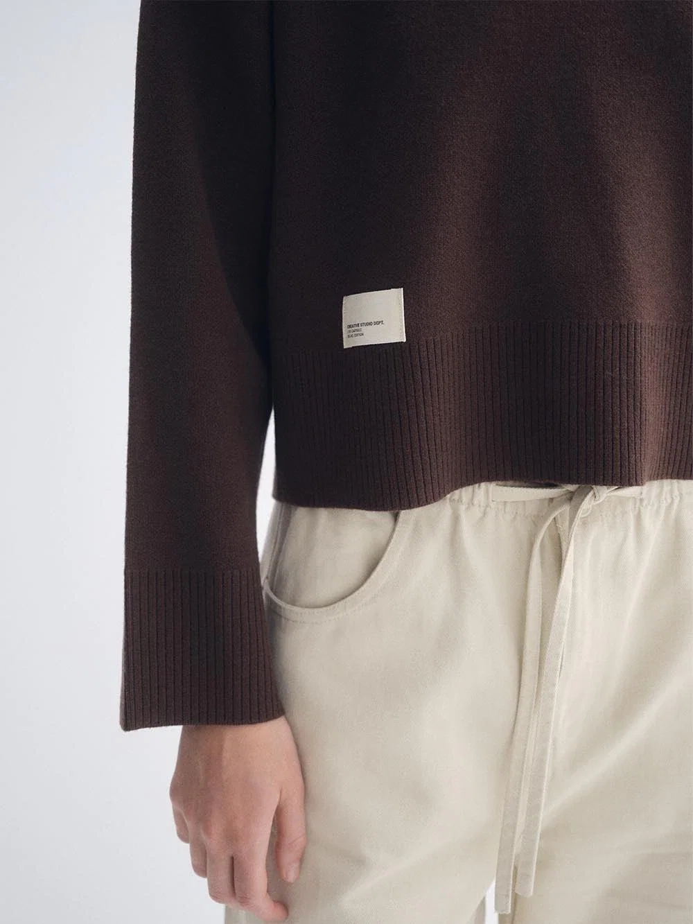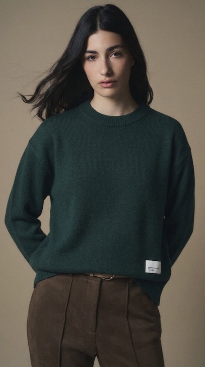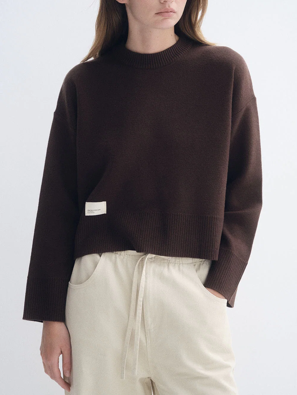 Sweater básico. Sweater básico con una etiqueta en el inferior izquierdo.La modelo lleva un talle único en chocolate.HILADO: BREMER 100% c/ LANILLATABLA DE MEDIDAS: