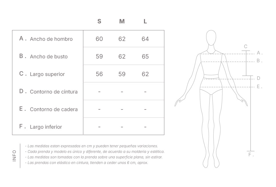 TELA: 74% ACRILICO 22% POLIESTER 4% SPANDEXTABLA DE MEDIDAS: