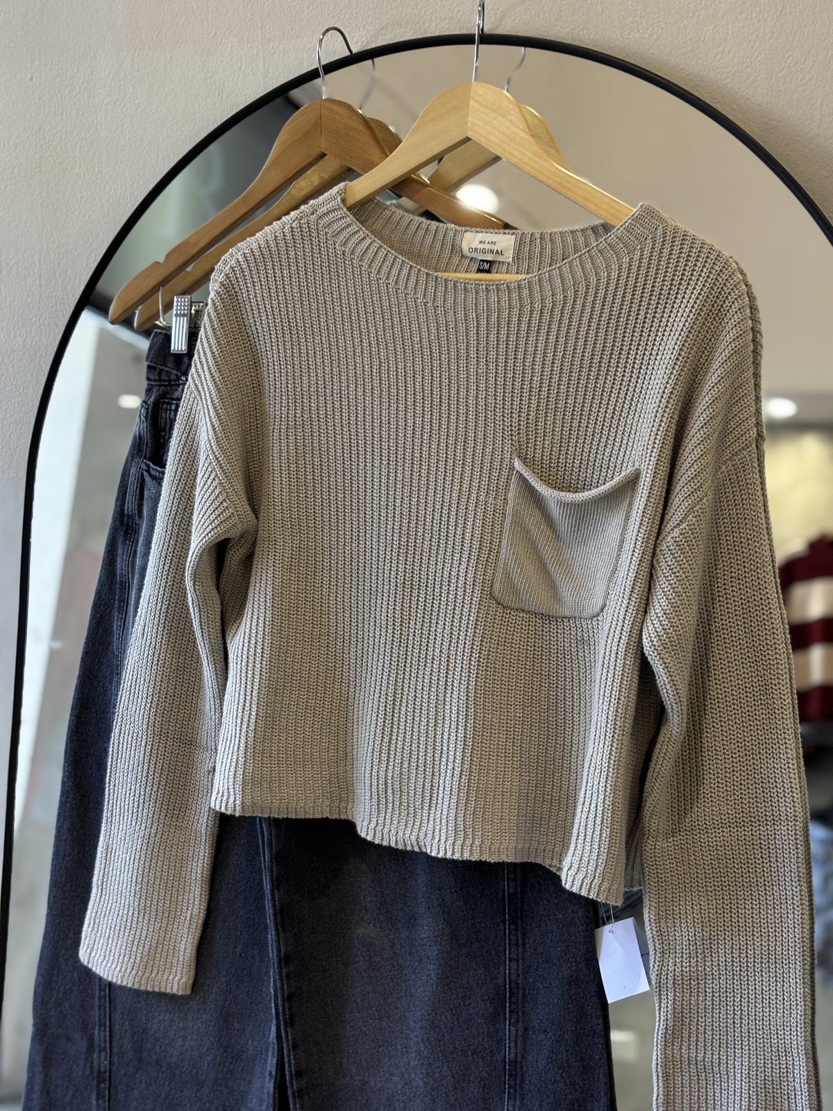 Sweater tejido fino con bolsillo.