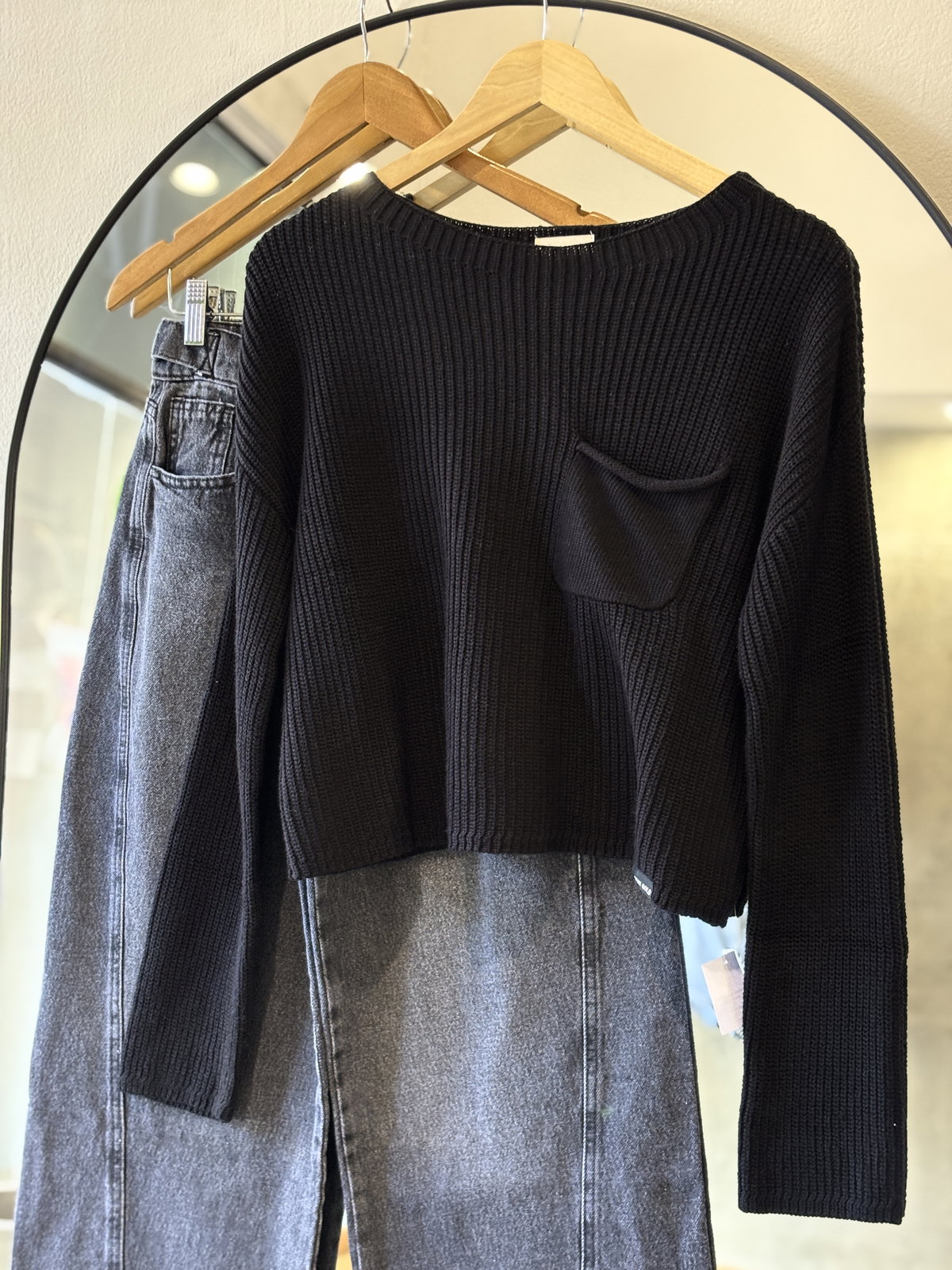 Sweater tejido fino con bolsillo.