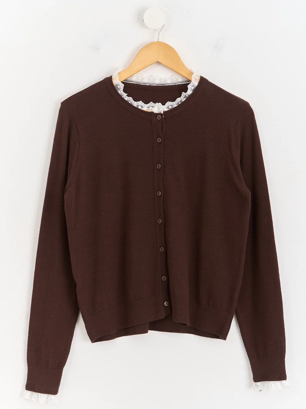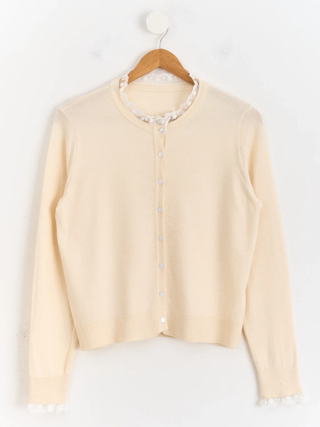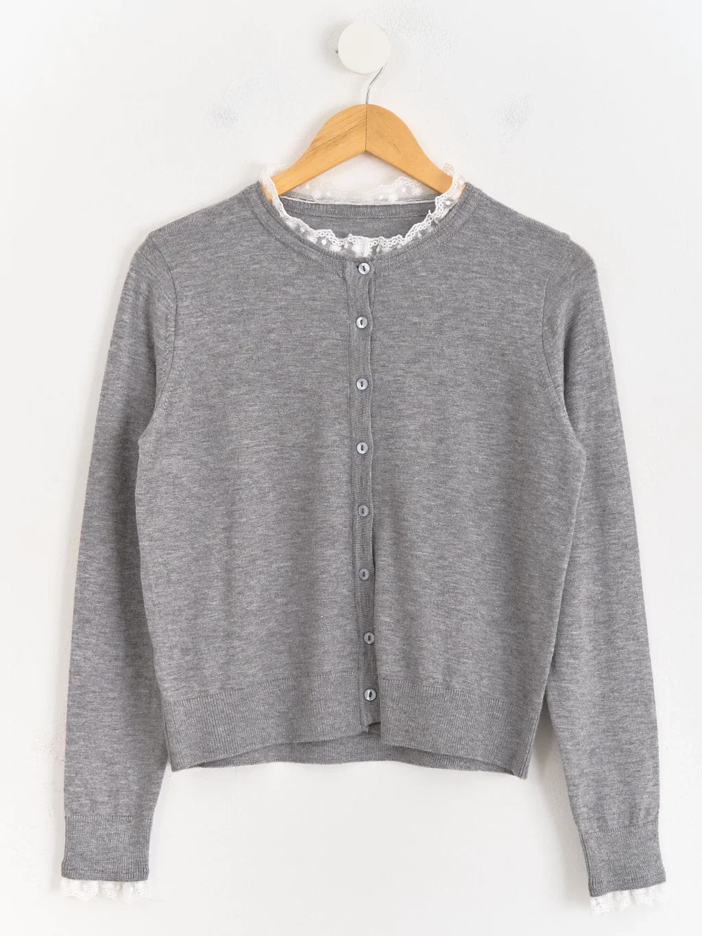 Cardigan con puntilla en cuello y puños